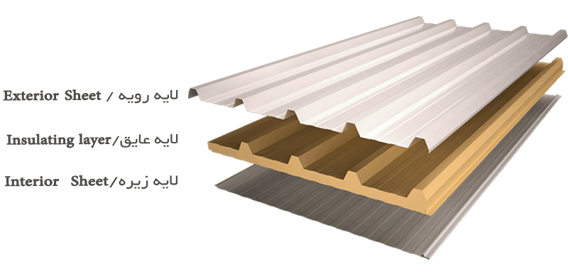 ساختاری سبک و مرکب دارد که از دو طرف به دو لایه محدود شده است و در وسط آن یک لایه عایق قرار دارد (همانند یک ساندویچ خوردنی که نان آن مواد غذایی را احاطه کرده است) این ماده عایق می بایست بسیار نرم و سبک و دارای خواص فیزیکی خاص باشد. ساندویچ پانل ها به دو گروه دیواری و سقفی تقسیم می شوند. و از طرفی خود ساندویچ پانل های سقفی و دیواری از موادی مانند پلی یورتان (بعضا پلی اورتان نیز نوشته می شود که اصطلاح علمی و صحیح آن همین ساندویچ پانل پلی اورتان است)، پلی استایرن، پشم سنگ و پشم شیشه تولید می شوند و در پوشش انها از ورق آلومینیم ساده و طرح دار رنگی، ورق آلوزینک ساده و طرح دار رنگی، ورق های گالوانیزه رنگی و ... استفاده می شود.